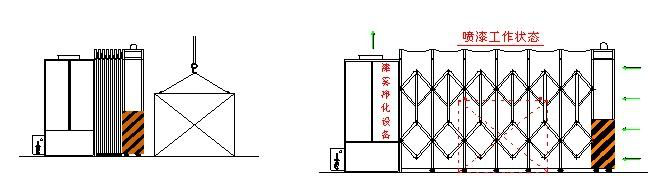移動(dòng)伸縮式噴漆房是一種可以在使用時(shí),可以自動(dòng)展開形成封閉或半封閉的環(huán)保噴漆房,不使用時(shí)收縮合攏到一處的特殊環(huán)保噴漆房設(shè)備,由于移動(dòng)伸縮式噴漆房使用靈活、節(jié)約空間,它在現(xiàn)代涂裝應(yīng)用中越來越多。