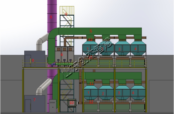 4——4號吸附床 12——脫附風閥